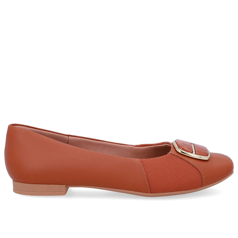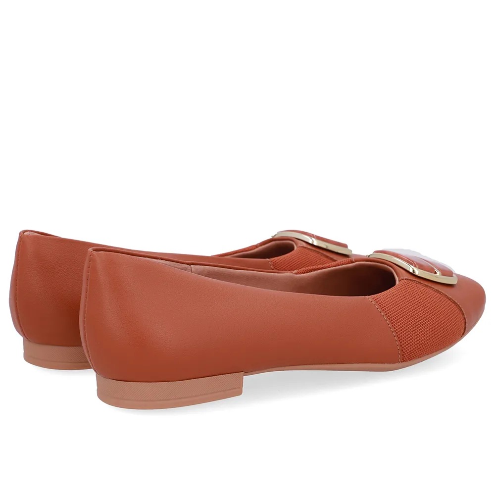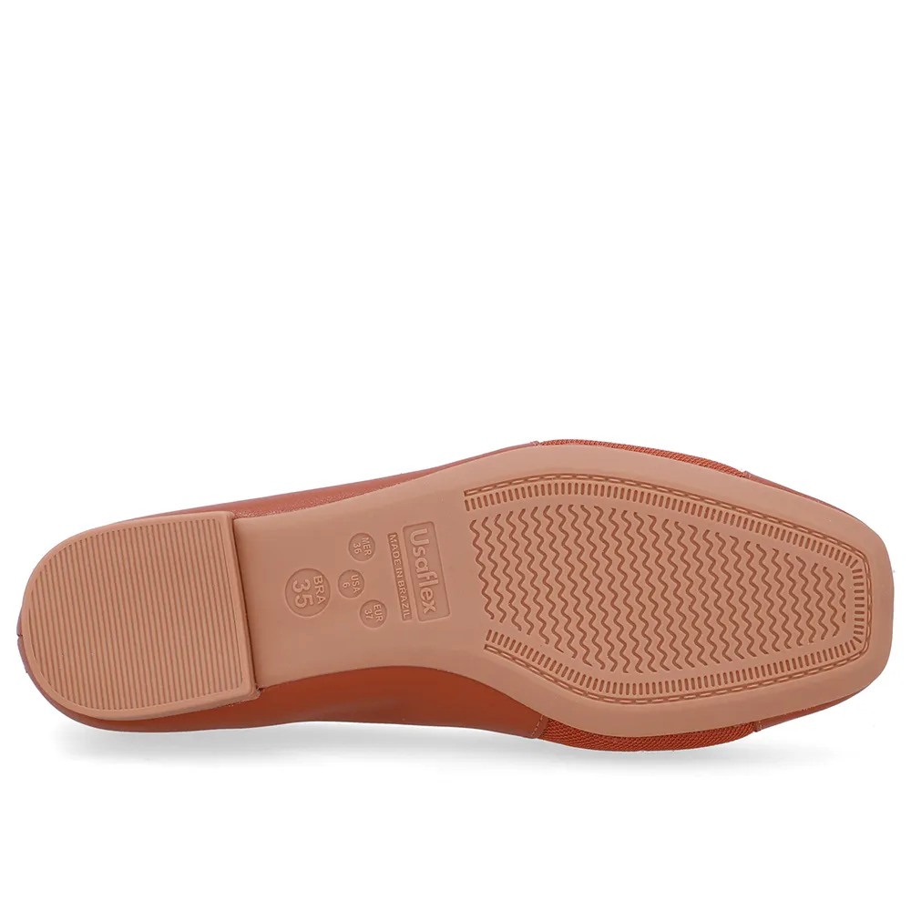 Sapatilha Couro Doce de Leite Bico Quadrado