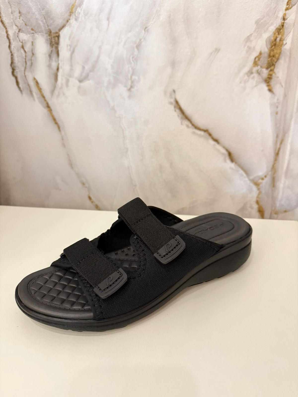 Sandália estilo slide que une conforto e praticidade para o dia a dia. Possui duas tiras largas com velcro, garantindo ajuste perfeito para diferentes tipos de pés. A palmilha anatômica com textura massageadora proporciona bem-estar ao caminhar, enquanto o solado anabela baixo e leve oferece estabilidade e reduz o impacto nas articulações. Confeccionada em tecido tecnológico macio e respirável, evita atritos e bolhas.