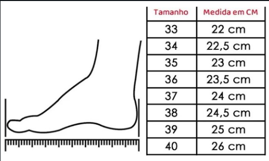 Utilize essa tabela para fazer a medida do teu pé para ver o calçado.