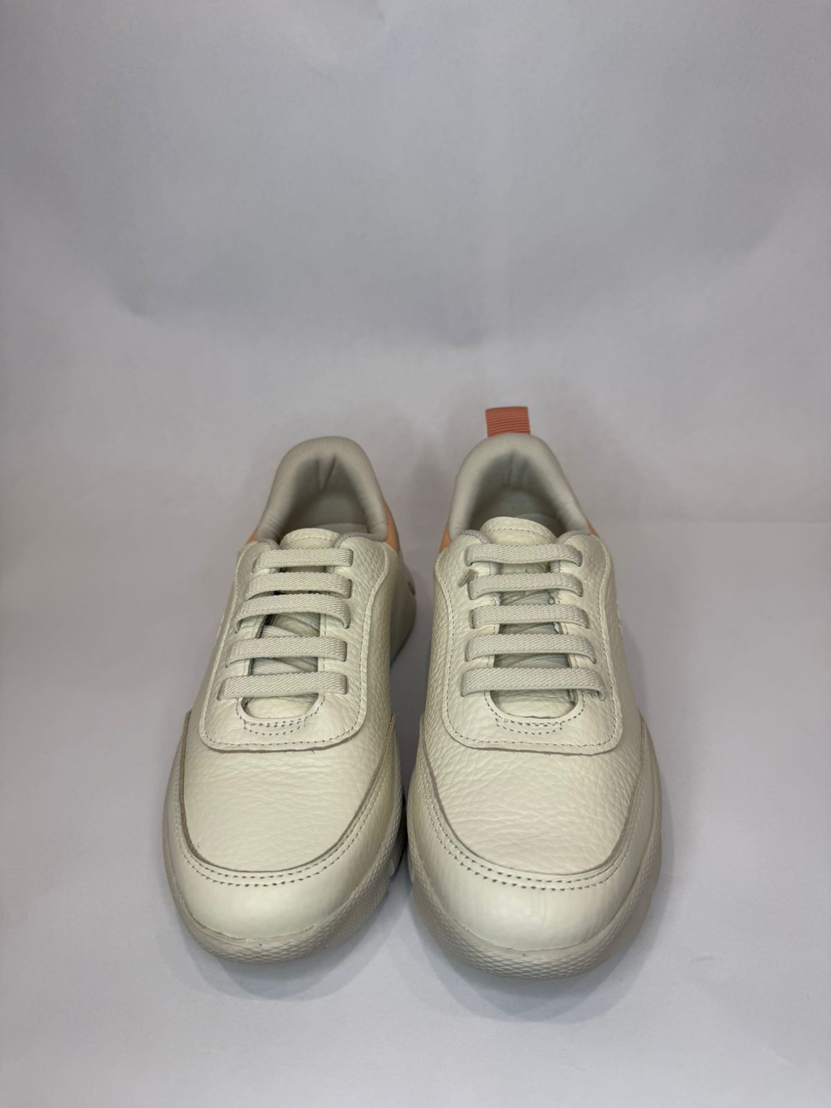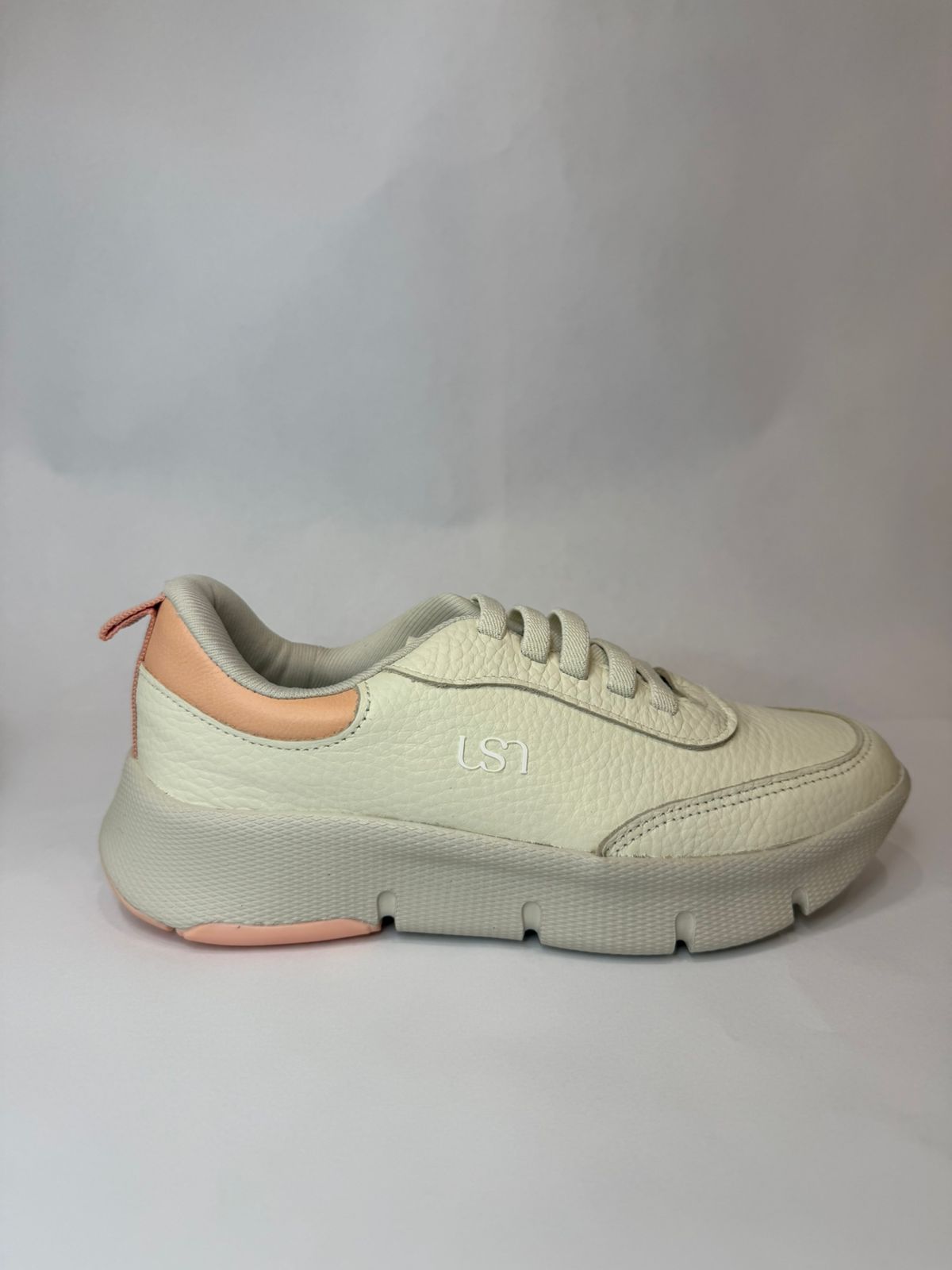 Tênis Usaflex em couro na cor marfim, desenvolvido para quem busca conforto, elegância e praticidade no dia a dia. Confeccionado em couro macio de alta qualidade, oferece ajuste perfeito aos pés, aliado à palmilha confortável e solado leve que garante estabilidade e bem-estar ao caminhar. Seu design clean e versátil combina facilmente com looks casuais e modernos, sendo ideal para uso diário com muito estilo e conforto.