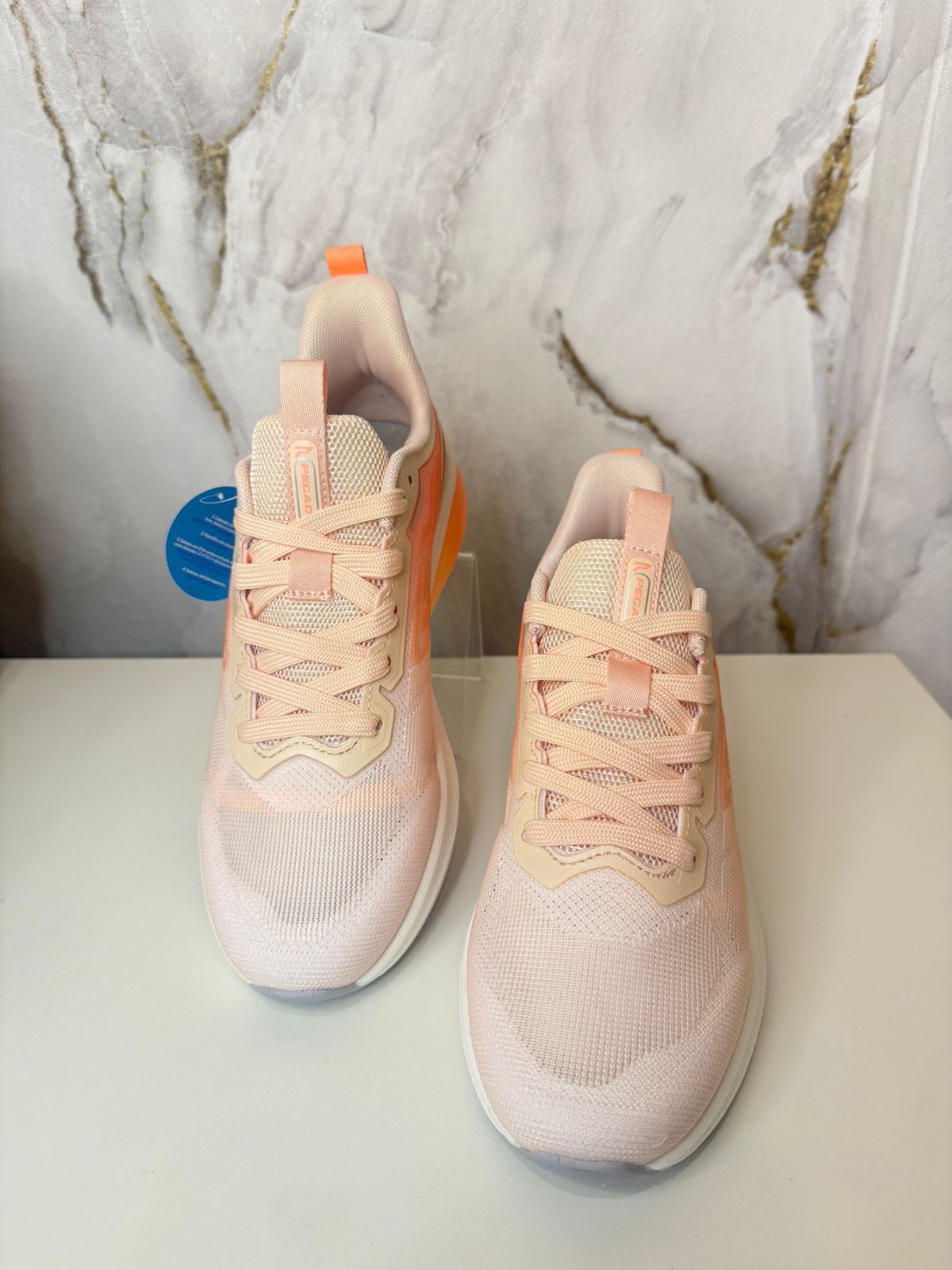 Seu design clean em tom off white ganha charme com os detalhes em orange, trazendo um toque feminino e atual ao modelo. Conta com palmilha confortável e solado leve e flexível, garantindo estabilidade e segurança em cada passo.